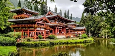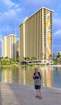 夏威夷景物安詳 屋宇樓房浴艷陽 地點百彎多是水 遊人如織好風光