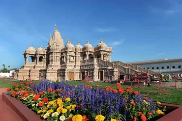 花圃庭園艷麗容 紅黃紫白沐秋風 樓房屋宇巍峨建 宮殿皇朝景貌隆