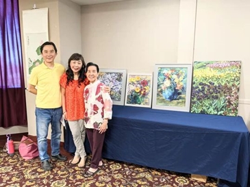 筆者和宋久瑩夫婦合照 畫作屬她當天在會場展示作品