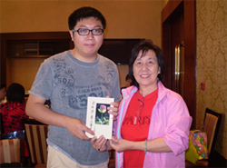 對我讚賞、鼓勵像他這樣年高德昭的文壇詩界前輩,心境不老,活水長流。與他交談時,倍加親切並感受他的風格正如著作『三合土集』付梓詩句: 三合凝成汗血篇 綰纆優樂布衣緣 襟懷磊落乾坤大 字裡行間正氣綿 蔡麗雙博士,不但人品清麗脫俗,聲嬌貌美,更屬一位當代著名女詩人,對文學修養,造詣高超,堪稱文壇奇女子。閱讀她作品,體會到她把文學當作藝術,字裡行間,充分流露出書卷氣與靈秀氣,既富情趣又饒有韻味,至令我愛不釋手,謝謝送給我的書及茗傳百年安溪正宗鐵觀音茶,隆情厚意,實為感領。八月份她女兒赴美國入讀南加大學(USC)將陪同到來時,我們有機會重聚,以能略盡地主之誼。
