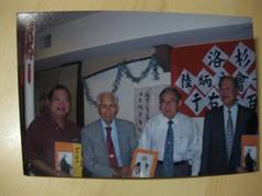 晚景應吟賞,芳華自有香,詩盟交誼好,社友雅情長, 2013年陸正平(中華一絕,三倒奇翁)屬國際華奇會會長,6月份由廣州到美國、加拿大巡迴表演倒書書法。適逢今年80大壽,舉辦慶祝華奇會8週年並書詩畫聚會很熱鬧並饒有意思,離開前曾往向楊老辭行(因屬華奇會榮譽顧問)託其轉交由我統籌,剛完成刊印的晚芳成立三十週年,第六輯詩詞集送給楊老鑒閱,獲覆知十分高興。而且晚芳三十週年社慶刊印特輯時,楊隆生名譽社長曾有題下詩句: