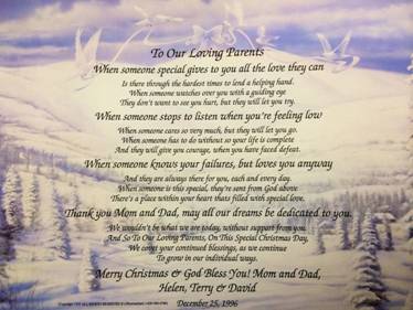 回憶十八年前1996年 12月25日聖誕節時,他們姐弟三人合贈的禮物,曾經令我感動落淚。一幅字畫誌上心聲: