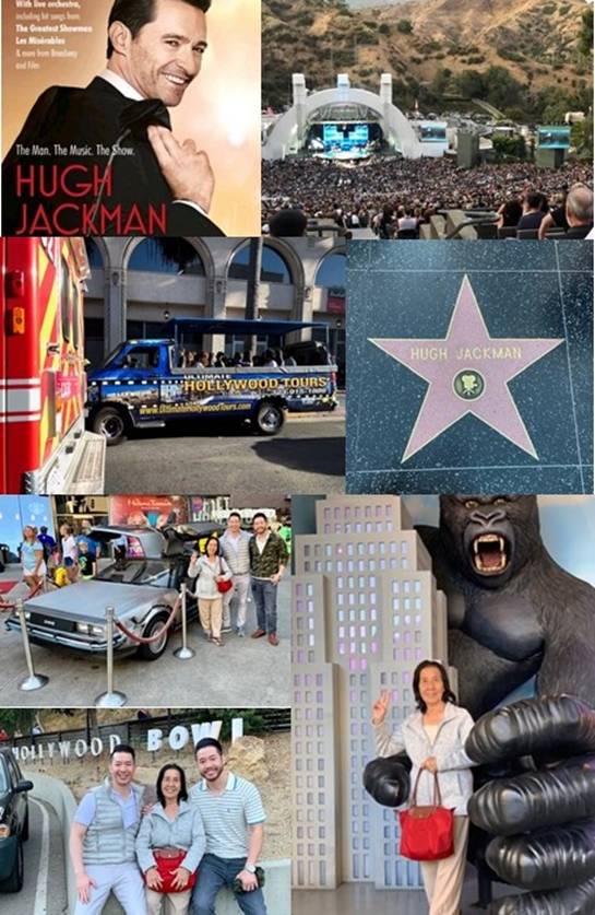 當天周末五時小兒子江嘉偉David,駕駛了剛買的新車Subaru 載同我和嘉豪,從南加州橙縣近迪士尼樂園住家出發,前往荷里活。在Hollywood和Highland 停車場地下室寄車後,因時間尚早,便隨著人羣漫歩街頭瀏覽景物拍攝留念,再坐Uber直逹Hollywood Bowl,等候麗芬下班後,搭乘專車巴士到來會合,可惜女婿Jos 有事未能參加。