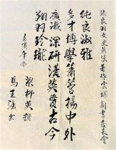 純良淑雅 多才博學簫管揚中外 翔羽玲瓏 廣識深研漢英貫古今 梁柳英賀聯 馬玉强書法