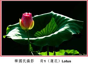 韓國民屬美籍華人出生於越南,移民美國後創建美佳攝影學會。因對荷(蓮花)情有獨鍾,攝影荷花的技術精湛頗有心得,表示每當正午前拍攝下此花,其高潔艷麗,出於污泥而不染氣質,總是能激發到他創作靈感。曾經參加美國洛杉磯2001及2002年,第二和第三屆蓮花節攝影比賽,連續兩年奪取冠軍。近年來更在橙縣 Bosa小西貢社區,以中文越語教授荷(蓮花)Lotus 學名Nelumbo Nucifera Gaertn) 攝影課程。故卅多年來享有「蓮花王」尊號。我有感而為之誌詩:「詠蓮花」,「送春偶感」。並且以他名字贈聯: