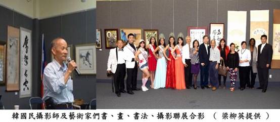 二◯一七年韓國民接受「南加作協」和「美西華人學會」邀請。為慶祝五四文藝節,舉辦的「人間四月詠春」雅敘活動。在洛僑中心聯合十六位藝術家舉辦書、畫、書法、攝影等項展出傑作時,又一次贏得極大讚譽。