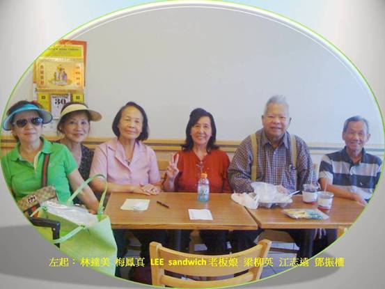 江志遠 梁柳英詩家伉儷剛抵聖荷西與接車眾友小叙於 LEE sandwich店 左起: 林達美 梅鳳真 LEE sandw
