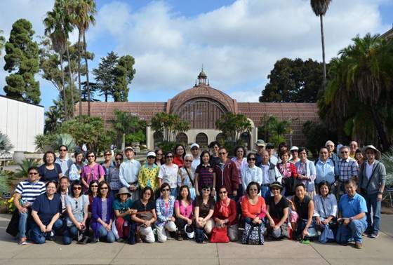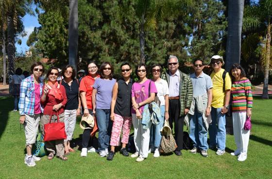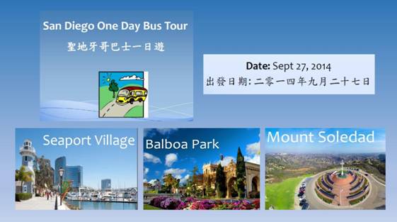 喜樂盈然遊記 ◆聖地牙哥巴士一日旅遊 2014年9月27日,我和江志遠參加南加州橙縣安納罕市 ,華人浸信會雙語堂, 由一班熱心愛主虔誠事奉的弟兄姐妺, 組辦聖地牙哥巴士一日遊,到巴爾波亞(Balboa Park),聖地牙哥海港村莊(Seaport Village),索萊達山 (Mount Soledad )觀賞三地區景點。 清晨七時正,五十多位教友們, 在教會廣場齊集, 青年傳道人禱告後, 搭乘大巴士出發,車啓行時, 大家吃著獲分給豐富早餐,(三文治, 礦泉水,果仁, 生果,甜品 )興高釆烈彼此閑談歡聚.並聆聽著領隊,為我們悉心準備風趣笑話, 又玩遊戲,猜謎語,更同練習唱詩歌 : (全新的你 ),感受耶穌基督大愛,福杯滿溢,加強信念, 愛主更深。 九時抵臨巴爾波亞公園,這個屬聖地牙哥後花園, 位於市中心北區,佔地 1,200 英畝,是一座綜合性公園,可比美紐約中央公園,處於繁忙喧嘩市中心內的一片淨土,擁有 15 座博物館, 包括著名的動物園(San Diego Zoo ),美術館,博物館,劇場,餐廳,以及娛樂健身設施等等.... 因時間關係,只能作匆匆掠影下,便先去植物園參觀,奇花異草引人入勝.再到玫瑰園,繁花盛放,為這個優柔靜謐的城市公園增添絢麗的色彩,當經過人工噴泉,沿著池塘欣賞荷花郁香,錦鯉悠游, 水鴨戲水怡然自得其樂,進入正門內部許多品種蘭花令人目不暇洽.我這惜花之人當漫步在氣派高雅花園,抖落幽幽迴廊間,拍攝錄影興緻盈然,樂而忘返,此地遊客終年絡繹不絕,真屬聞名娛樂文化中心.更值一提.它是 5號公路從中貫通公園, 卻不聞車水馬龍的喧擾呢。 隨後來到聖地牙哥海港村莊 ,這是由各式建築組成,具有當地特色的旅遊景點,有著50多家購物商店,街頭有繪畫及樂隊,歌手,舞蹈表演娛樂節目,我們帶著餐券在9間建立於海港附近餐館,隨意揀一份喜歡食品,坐在紫藍天空陽傘高張座位下,對向海港望見帆船徐徐啓行於浩瀚汪洋,實感舒暢,心曠神怡。 吃完午餐散歩,時值烈日當空,但海風吹拂,陣陣涼意,我們向前進行,到達日本沖繩島停駐的那艘 Mid Way 軍艦停下.瀏覽周圍壯觀氣象。 二時許安抵索萊達山,全體登上了石級,在這座 1954年為紀念韓戰老兵而建,高度有43英尺十字架前默禱,一起高聲唱 : (在禰跟前 )聖詩領受主恩更多.在同負一軛 ,共感一靈氣氛溫馨中,又一次對神委身,獻上虔誠意願。 最後巴士載我們開向歸途,眾人小作休息之後,竟然有所意猶未盡,繼續發動 餘興節目紛紛參與分享講故事,解成語,猜謎....我亦為大家助興唱國語歌 (往事)及粵曲小調 (鮮花贈美人) ....在掌聲, 歌聲和歡笑聲中眾人非常愜意,車行迎著夕陽餘輝, 燦爛晚霞光耀大地,結束了這次喜樂盈然聖地牙哥巴士一日旅遊。