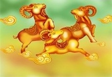 大地春回生草木,三羊足捷接新來。梅花添喜氣,爆竹旺丁財。語意吉祥,善頌善禱。