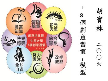 ──「苟日新,日日新,又日新」(大學)要改善更美滿生活的重要功課是不斷加油點燈,强化創意人格特質,並鼓勵青少年養成下列的「8個創意習慣」(胡寶林,2006):