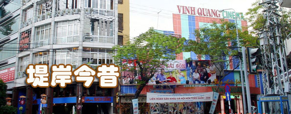 可不相信,我們不妨逛一逛水兵街(今陳興大道),由聖心教堂到西貢接壤的『能詩』。首先入的是楊子江街頭的『中興』(中華)影院,直下偉堂書局大光明巷內『大光明』影院、總督芳街(朱文廉)街角的『平安』影院,過了參辦街(傘佗)不遠就是『新越』影院、潘富仙街角的『樂宮』影院,與大世界為鄰的『麗都』影院,和平市對面的『璇宮』、『金像』影院,就有八家了。我們再繞一繞回總督芳街,居中就是『中國』影院、對面是『皇后』影院,和距離麗苑舞廳不遠的『娛樂』影院。加上梁如學街的『三多』、廣東街(趙光復)的『皇宮』、阮橫街(陳富)的『豪華』、品湖街(海上懶翁)太平市的『太平』、中山門的『華聲』總共十六家。當然裡面還缺了專演大戲的『同慶』、第六郡後江街的『紅蓮』、鳴鳳街的『繼鵝』、十一郡的『國泰』、中和橋腳的『森舉』和第十郡師萬幸街的『金珠』(揚來)影院,可真不少啊!