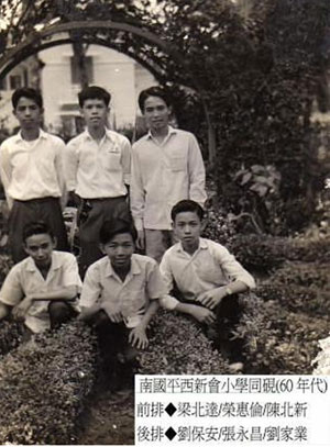 南國平西新會小學同硯(60年代) 後排◆劉保安/張永昌/劉家業 前排◆梁北達/榮惠倫/陳北新