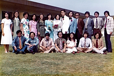 教堂,崇基學子二人,照片中除四人是學士外,其餘都是博士碩士,教育碩士一人,新郎已肺癌過世矣!