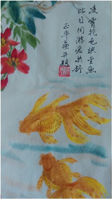 凌霄花色映金魚 比目同游愛共舒