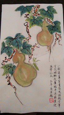 一對葫蘆富貴家 兒孫飽學筆生花