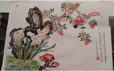 (壽帶鳥、靈芝、水仙、夀石、南天竺等)