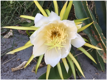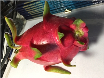 今日新摘火龍果,原產地:鬷邁廬,廬主數年前贈枝,今之古人轉植於後園,每日澆水,去年只有一顆收成,今年則有六顆矣!續去年之詩,今年再賦詩一首致謝鬷邁廬主也!