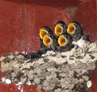 樹梢孤巢 黃口孜孜 雛兒索食 母勤餵飼