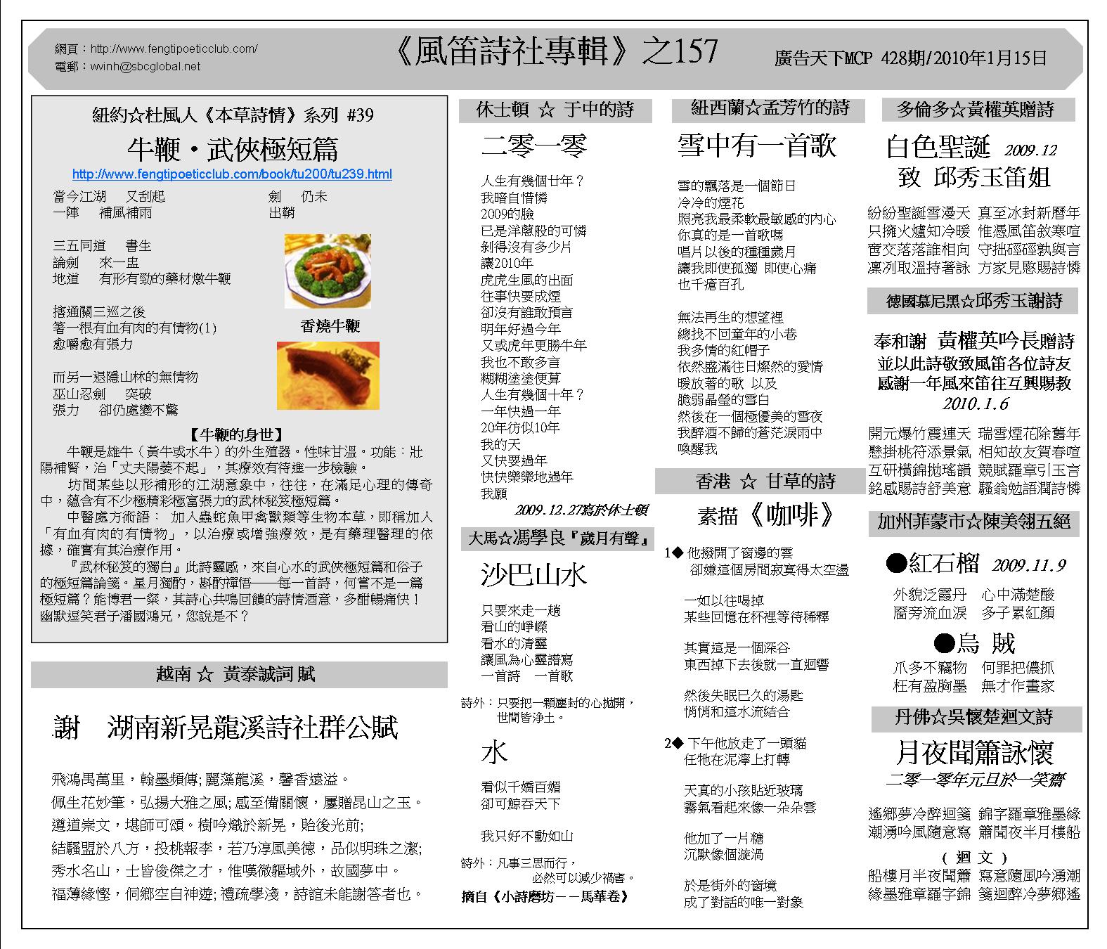 ¡m·²Ã¸ÖªÀ±M¿è¡n¤§157¡´¼s§i¤Ñ¤UMCP 428´Á/ Jan.15,2010