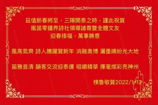 茲值新春將至,三陽開泰之時,謹此祝賀