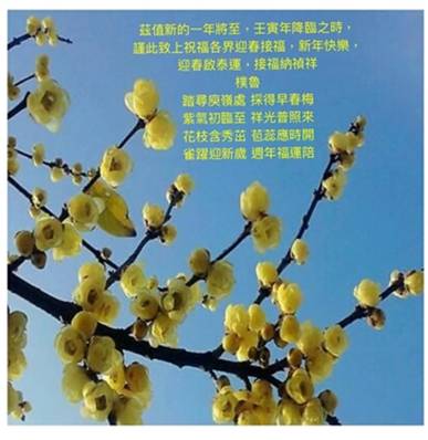 茲值新的一年將至,壬寅年降臨之時,謹此致上祝福各界迎春接福,新年快樂,迎春啟泰運,接福納禎祥。