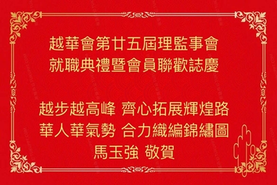 ——越華今晚四月廿日參加越華會第廿五屆理監事會就職典禮,六百多嘉賓出席參加,場面隆重熱鬧。