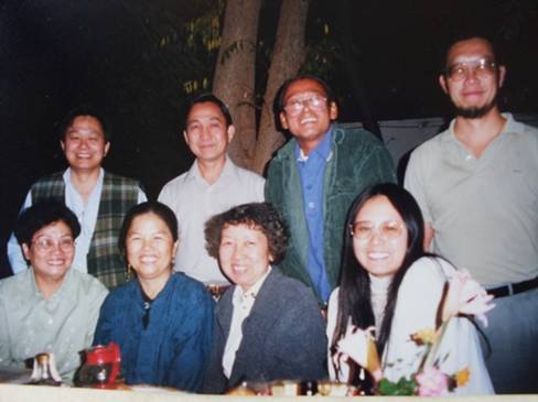 後排自左來自越南華裔詩人秋原、黎啟鏗、陳本銘、陳銘華 與前排左二作者、左三斯冰、左四來自北京詩人王露秋 於洛杉磯亞凱迪亞詩人聚會。