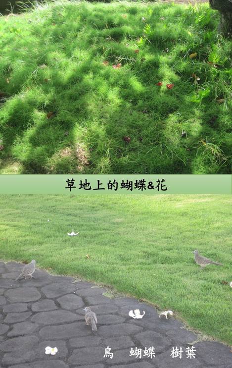 最近,我驚喜夏威夷的住處,竟也有幾株蝴蝶樹。有日清晨,乍然看見一隻翩然飛舞的銀白色蝴蝶,我想追卻追不上,然後,看到滿地的紅、白色蝴蝶花。