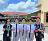 廿二日上午乘車至一小時車程的馬來奕縣,此縣是汶萊最大的行政區。我們在頗有規模的中華中學舉行閉幕典禮,學生們的擊鼓、千手觀音、民俗舞表演均甚有水平,可見平時訓練有素。該校新建的圖書館小巧雅緻,校長及董事長陪同我們參觀。凌鼎年老師看到書架上陳列著他的三部作品,十分開心。