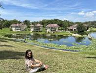走出大廳,沿著草木扶疏的園區漫步,驚喜發現幾座獨立別墅,座落於十里荷風,蓮葉田田的水面上,別是一番「浮香繞曲岸,圓影覆華池」的清越景緻。