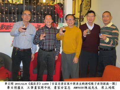 畢日陞2013.12.31《滿庭芳》cc050「甘富忠書家寓中與衆友酌酒唱歌子夜迎新歲一闋」 畢日陞廬主 工筆畫家周平珖 書家甘富忠 AM1430 陳述先生 席上鴻儒