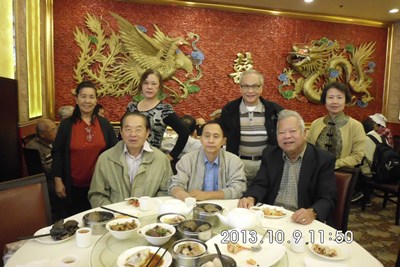 (欣迎吳銘枝,馬周梅賢伉儷寶島台灣到加拿大温哥華參加校友聯誼過訪美國,喜能與好友們一同於「慶相逢」茶樓聚舊,感慰興賦)。