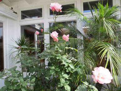 幾年前的情人節,我很意外的收到一大束18朵粉紅的玫瑰花,居然是隔壁的獨居老婦人打電話請花店送來的。她因為骨折,躺在床上好幾個星期,唯一的女兒又不在身邊,老婦人用玫瑰花來感謝我們對她經常施予的援助。外子注意到我不時盯著玫瑰花所散發出的喜悅時,察覺出我們家院子裡每年變換的花草,獨缺眾人皆愛的玫瑰花的遺憾,而我原來是如此鍾情於玫瑰花的!