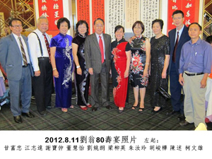 2012.8.11劉翁80壽宴照片 左起: 甘富忠 江志遠 謝寶仲董慧怡 劉姚朗 梁柳英 朱汝玲 胡峻樺 陳述 柯文雄