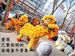 你已經看了不知多少「年」、多少次,只是每一次你都熱淚盈眶,甚至淚流滿面。女兒小時覺得很訝異,你告訴她你的童年在南越美拖,每次過年你一定會跟隨醒獅團,也是大街小巷走一整天,學他們的「舞姿」、採青、擺幾個武術招式,在家裡玩了起來。巴黎的「年」,不管你年紀多大多老,都會因這熟悉的鑼鼓聲、這熟悉的「獅影」,這無法抹去的童年回憶、從小遠離父母、家鄉的流浪飄泊蒼涼感受,總會將你深埋心底的眼淚全部勾出來,不能抑止地泣著。長大後的女兒在你掉淚時會拍你肩膀。
