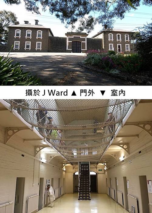 接著是第二個參觀地點,Aradale 精神病院。它是在一八六七年淘金潮後期建立起來的,最高峰時曾經接納一千名病人。一九九八年關閉了,二零零九年重新為遊客開放。從旅遊資料的照片中、看到一座座三層高雪白色的古典線條輪廓建築,怎麼就像個豪華大酒店呢?竟然有六十三座!我的天啊!我得去看看到底是怎麼回事。可是當我到達門口一看,就愣住了,沒有勇氣走進去。要是說站在大海懸崖邊上,看著腳底下的海水拍打著石崖發出的巨響,我尚且還有停留幾分鐘的膽量。可是眼前的這些層層蒼白的樓宇,隱約可見的斑駁殘積,在灰濛濛的雨天裡,像一群幽靈般站在我的面前,蒼涼蕭索。抬頭望一望那些密密麻麻的格子窗,使我想起了J