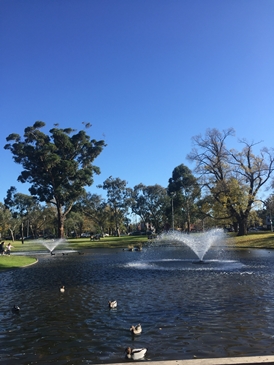 王子公園(Prince Park)風和日麗,暮秋疫魔匿跡,口罩盡除,鴛鴦戲水自得其樂,行人晨運,各族裔相視莞爾,相處和睦,一片安詳寧靜。居此天上人間樂土,夫復何求!拙詩七言誌之。