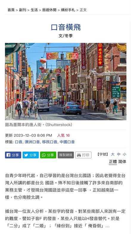 自青少年時代起,自己學習的是臺灣臺北國語;因此老覺得全臺灣人所講的都是臺北國語。殊不知日後接觸了許多來自南部的業務主管,才發現臺灣國語並非這麼一回事,正如越南話一樣,也分南腔北調。
