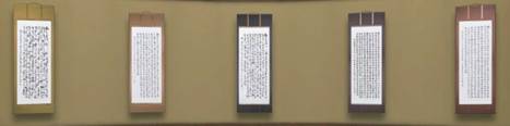 這五幀莊嚴的藝術巨獻,是梁氏藝術的重要代表作,也是史無前例的寫經藝術系列。