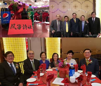 二◯一九年六月八日,敝校「多明中學校友會」在洛杉磯市「海珍大酒樓」舉辦第二十二屆聯歡晚會。叨蒙「風笛零疆界詩社」諸位詩人紆尊降貴,光臨指導,賀詩賀詞紛來沓至,使這所毫無名氣的敝校蓬蓽生輝並飄溢詩歌韻味、翰墨芳芬,別有一番引人入勝的書卷氣息。