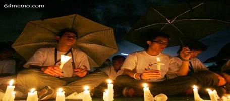 數萬香港民眾冒雨在維多利亞公園舉行燭光守夜