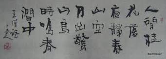 人閒桂花落,夜靜春山空; 月出驚山鳥,時鳴春澗中。 ──王維原作