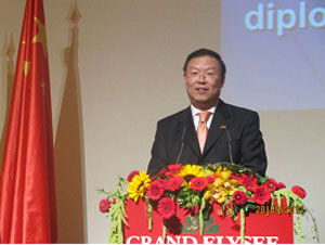 2012年9月28日星期五,天色明朗。傍晚六時,忙碌了一禮拜的人們在周末前的晚上來到漢堡市中心Grand Elysee大酒店。漢堡總領館在這裡舉行盛大招待會——“熱烈慶祝中華人民共和國成立63周年暨中華人民共和國與德意志聯邦共和國建交40周年”;這也是楊惠群總領事今年春天走馬上任以來首次以東道主身份與中外嘉賓的見面會。可惜楊總領事夫人因帶團觀訪海港,遭遇了風寒而患外感高燒,不能陪伴夫君,缺席了招待會。