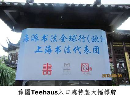 8月9日傍晚,漢堡豫園(Teehaus)佳節般熱騰。平日作為孔子學院大教室的綠波廊樓下大廳,用立屏張掛了19世紀中葉以來繁榮“海上藝壇”的書畫大家代表作品。我在德華旅行社總經理沈國強和代表團顧問、漢堡豫園股東上海普陀區文化局副局長范文翔指領下,從人頭攢動的展廳上樓到會場,見到上海書協主席周志高團長,向他轉致了蕭瀚先生的親切問候。好比吉人有天佑,周先生的女兒周倩不久前結束了巴黎的個人畫展,即隨侍父親參加了海派書法展。