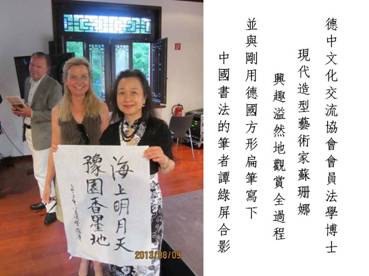 在此期間,我們德中文化交流協會的創會會長、現居北京的中國人才研究會書畫人才專業委員會會長、知名海歸畫家蕭瀚來信,要我向他的好朋友、本次海派書法家代表團團長周志高致以問候。