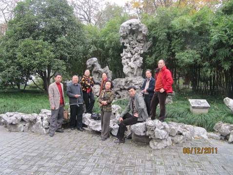 1 歐美作家一行乘火車入「倉」 左起德國知名作家髙關中/比利時知名作家章平/筆者譚綠屏/ 美國知名作家王威/美國知名作家融融/美國知名作家陳瑞林 2 望海石前英姿瀟灑竹林八賢 左起太倉市僑辦主任楊建新/ 德國知名作家髙關中/美國知名作家陳瑞林/ 美國知名作家融融/筆者譚綠屏/美國知名作家王威/ 比利時知名作家章平/太倉市作家協會主席凌鼎年