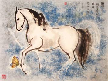 以馬和蝴蝶為主題創作了畫作「戀」,