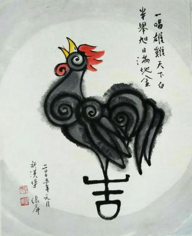 丙申雞年來臨前夕, 她又專誠創作了國畫「雞年大吉」 , 寓意:一唱雄雞天下白,半舉旭日滿地金。藉此來祝福同胞們
