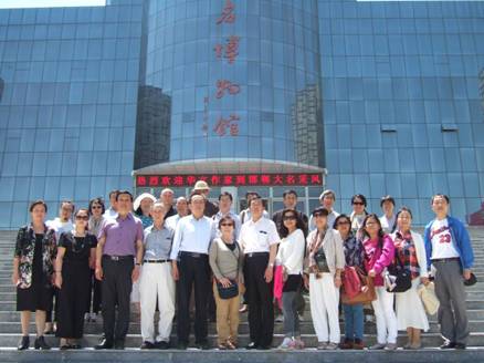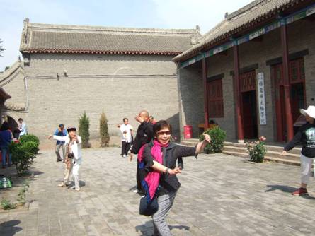 圖片說明: 圖一:大名歡迎作家采風團。 圖二:心水&婉冰相扶持下石級。 圖三:婉冰在太極之鄉與幾位太極高手一齊耍太極。 圖四:歡迎晚宴後邯鄲旅遊局苑清民局長與作家們合影 前座左1氣如虹 左3心水 正中苑清民局長 右3荷蘭池蓮子 右1婉冰