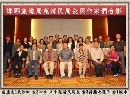 世界華文作家交流協會,所辦的文學之旅,每次我都是以平常心整裝待發,僅這一次卻引起熱烈期盼。因邯鄲市中國一級作家張記書文友牽針引線,促成往其家鄉采風,對完全陌生的地方,總難免躊躇緊張。 其實邯鄲這名字,在就學時曾聽老師講述,除了知道是源自一句成語「邯鄲學步」外,對其歷史完全不求甚解。展開我國海棠葉地圖,也沒清楚顯示地點所在。立刻上網尋找,希望有初步認識。按是古代三國時期是一個繁榮且重要的地方,兵家必爭城鎮,是我國成語的發源地,也是很多名人故鄉,或曾在此奮鬥建國立業之所在。 之前、孤陋寡聞如我,才真正明暸自己的知識是多麼的膚淺。總是認為山東才是古代名人的聚產處,一直難禁對山東有太多聯想,希望能蒞臨憑弔一番。為了對邯鄲風貌僅有簡略認識,終於、網絡上探索,才獲悉邯鄲種種多采景觀,勾起無限嚮往,竟焦急等待啟程出發了。 由星加坡輾轉到鄭州,滿臉笑意的史少華處長和張可文友,接我倆同回旅館,那時已是萬家燈火了;疲累的我感四週景物一片迷糊,暫忘鳴唱的饑腸,急急赴周公之約。是好奇心作祟吧,晨曦初露,把外子心水推醒,急於到餐廳和各國文友相會。舊雨新知,一同啟程往目的地,史處長處處照應,誠意接待,沒半點官架子,讓頓生好感。 途經安陽市時,心水的堂弟黃添福,從山東趕到,專為親自接待遠道而來的文友們。貴賓房那三十座位的特大餐枱,擺列整桌佳餚美酒;主人滿臉笑容地為大家舉杯接風洗塵。添福經營的福佳斯集團,辦公大樓門前及其所建樓宇,均高掛鮮紅橫額、閃耀醒目是:「熱烈歡迎世界華文作家交流協會蒞臨指導」讓各文友們意外驚喜,紛紛相互拍照留影。 小巴進入鄴城,樹蔭婆娑,綠草如茵。今日的中國處處皆是與藍天賽高,和樹木爭地的幢幢現代氣派的石屎森林。但進入臨漳境內,高樓巨厦是那麼稀少,讓我頓感萬分驚訝。映進眼簾皆是充溢復古氣氛的環境,錯以為走進時光隧道,仿若誤被放置魏國城裡。沿途車道兩旁,都是古樸式樣的路燈。博物館門前豎立梟雄曹操巨像,正和那棟雄偉城門,爭相述說昔日的光輝歷史,又彷彿向蒼天控訴,為淪亡國土永久默默悲哀憑弔。魏朝曹操所建築的三台,和曹家父子的才智事蹟,把我目光吸引凝聚。其實對於三台,我是在習唱粵曲時,有關曹子健在銅雀台七步成詩而脫離困境,免被迫害的典故,才對魏國的歷史略為認識;至於其他二台,完全一無所知了。但因曾涉獵三國演義,對於關公負責守華容道時,曾網開一面釋放曹操,對關雲長的英雄識梟雄之舉,才讓曹操其大業得成,思及此、難抑對關公的重義知恩更加敬佩了。 在邯鄲賓館和當地文壇先進交流,才知此地藏龍臥虎,連旅遊局的苑清民局長也是知名作家,著作等身者。彼此經簡略傾談,互贈著作後,便合照留念。苑局長特為遠途來作客的我們設歡迎晚宴,巨型的餐桌上佈置精雅;甚具禮儀的女服務員,為賓客捧上一道道精緻可口的菜餚,但最吸引我是那邯鄲盛產的五穀雜糧,淺嚐本地出名佳釀,口舌感覺醇香。座上的各位主人,紛紛向來賓敬酒和暢談,至深夜才盡興而散。 要考驗我們體力之旅宣佈開始了。全程由史處長、張昕、張可相陪,英俊且溫和樸的倪洋為導遊,沿途詳細講述,對我們這群問題不輟,或有些重聽的作家們,重複又重複的不厭其煩,那抹微笑永遠展呈面上。當地作家韓立軍,是一位樸實的年青人,他全程陪伴;肩負相機忙碌獵取焦點,我們一群都是他捕捉的目標。邯鄲以大自然的如畫風光迎賓,我等已目不睱給,真怕如呂洞賓在仙洞中醉臥,醒來僅是一場虛幻黃粱夢而已,但輕撫呂仙祠門前石碑,仙人以掃帚揮舞即就的「蓬萊仙」,和後來乾隆皇帝補寫的「境」,才感是真還假,假卻原來是真也。 獲邀往參觀一二九師的師令部,他們熱情接待我們這班從市區來的土包子,在簡樸的飯堂裡,共用部隊式鄉村菜餚,尤其那盤深綠野菜,入口鮮、甘、香,更勝山珍海味。娛賓除了精彩軍樂、軍歌、軍舞表演外,竟意外欣賞邯鄲的天地豪情,上天特地安排傾盤大雨迎賓。照顧週到的史處長立刻準備雨衣,才免去表演落湯雞的狼狽相。 抵達媧皇宮,讓我想起女媧煉石補青天的典故,且又搯土為人繁衍後代的傳說,雖然是真或是鄉野傳說,我也無時間考究,僅不禁沾沾自喜,畢竟是女性的力量吧,原來古代的女性,比我等能幹堅強。大雨連綿延續,是我們采風隊裡匿有貴人吧,才會招風引雨;石階路滑且恐高處不勝寒,故未能遍遊女媧宮,深感遺憾。匆匆臨高遠眺,仍見碧湖清澈如玉般晶瑩,雨絲正忙在碧玉上雕刻一個個有序的漩渦,懷疑是女媧煉石時滴洒湖上的淚和汗。青山綠葉隨風雨多姿態舞擺,如畫景物,入目是無限的舒暢,細聲對外子戲言,真想在此隱居,揮別世俗,悠遊地樂渡神仙般晚年了。 曾經在很久前的新年慶祝會上,和票友演出夜送京娘的折子戲,今日才真正弄清楚其故事內容,難怪朵拉文友常取笑說婉冰真能遇事不管整日迷糊。這次得遇曾演繹的角色,暗喜機緣不可失,立刻爭取和京娘像合照,永留紀念。 天天轉換景點,彷彿走馬賞花,但都是值得參觀的地方,如陶藝博物館、七步溝、峰峰磁州窯、武靈叢林……等等。讓我感驚奇是大名府的博物館,處處是名人碑帖。據說很久以前,因漳衛運河缺堤,曾淹沒了整座城府;經日久修復,雖然損失非鮮,至今依舊保有那麼多名人所寫的寶藏,傷痕處處的石碑,真是非常可貴